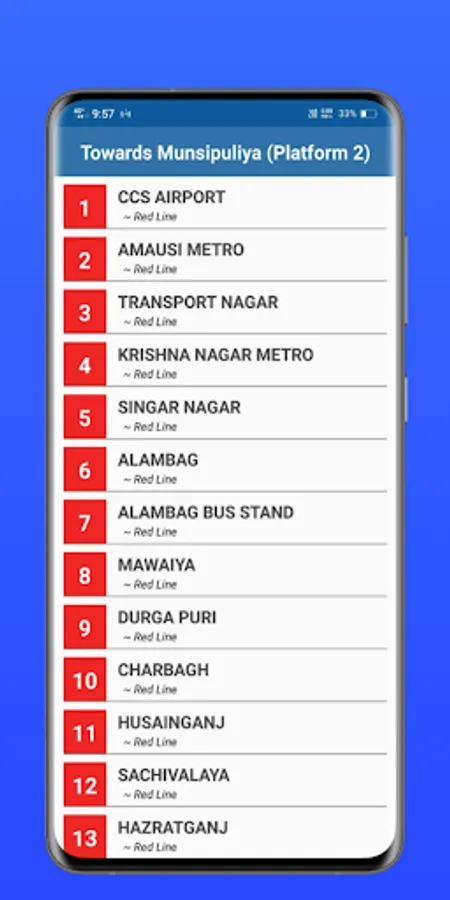 4. Know Your Metro :- Lucknow Metro Navigator App gives information about the available stations on each line. Currently there are two lines ( Red & Blue)in which Red line is functional and Blue line is under construction.