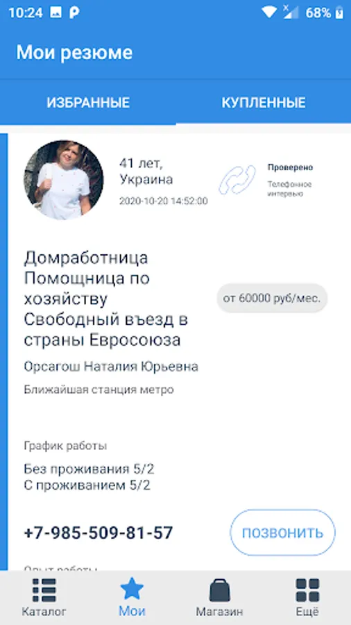 All domestic staff are here! EXO is access to the databases of specialized recruiting agencies. The base is available for viewing, replenished and updated daily. EXO mobile app will provide employee contacts, saving your budget. Save detailed CVs of nanny, housekeeper, driver, cook, au pair, nurse in your personal account and get constant access to their contacts. EXO is the best solution for recruiting domestic workers: your comfort is in your phone!