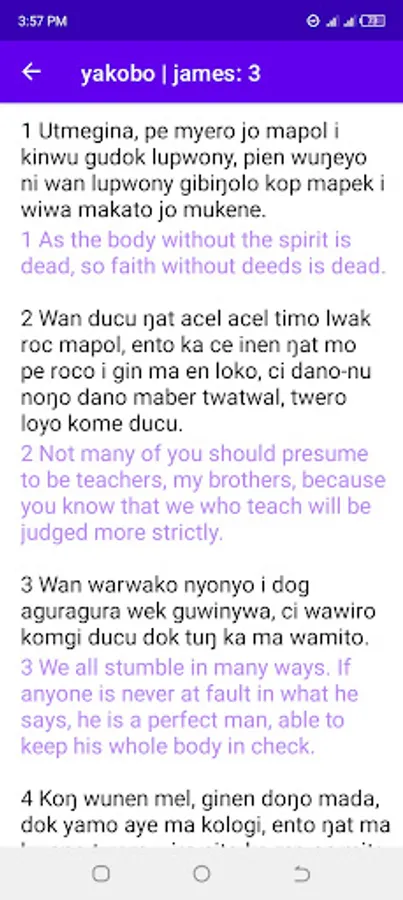 We are proud and happy to release Acholi Bible . Internet connection is not required to read the bible verses. The app contains both Old Testament and New Testament books in both Acholi and English language.