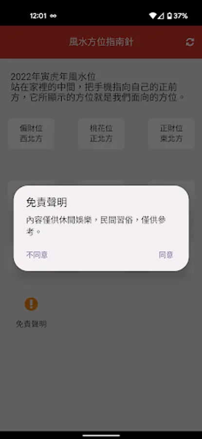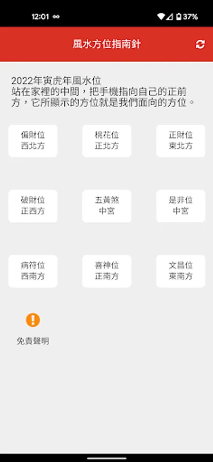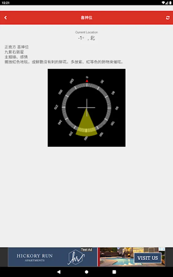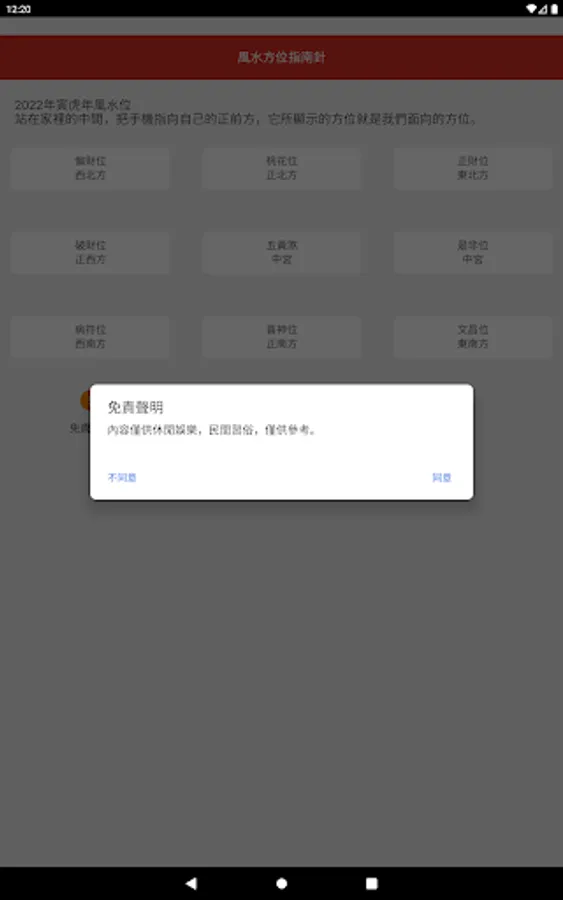 Help you find the financial position, peach blossom position, and Wenchang position of the home. Simple and easy to use. Open the compass in the APP. Then, standing in the middle of the house, point the phone directly in front of you, and the direction it shows is the direction we're facing.