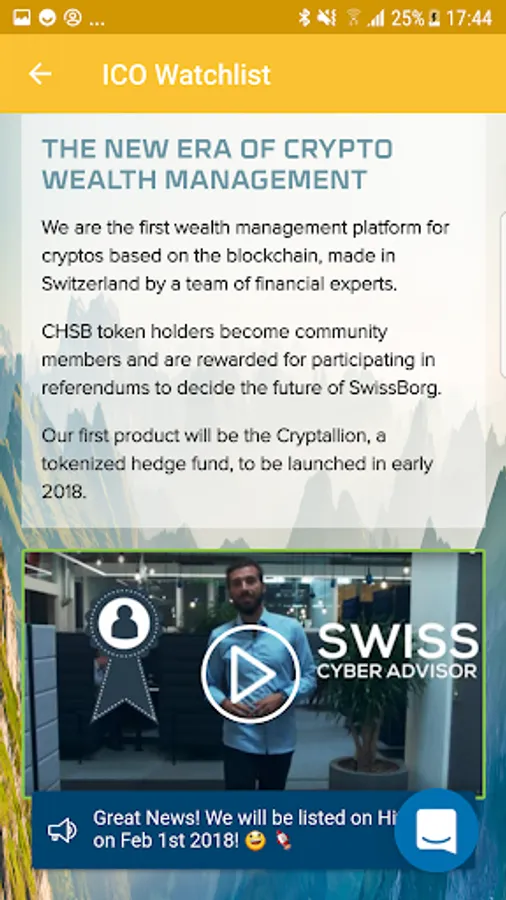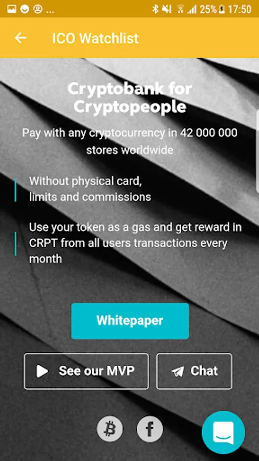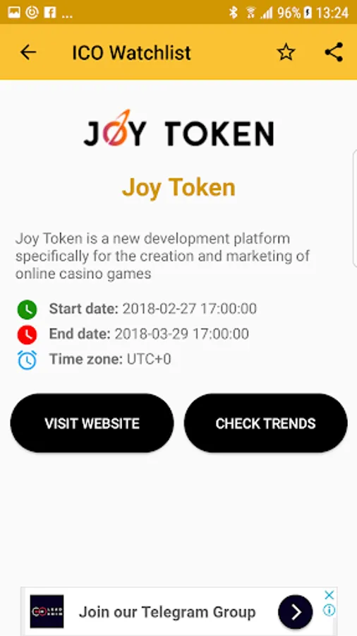 Monitor all current, upcoming, and finished cryptocurrencies ICO, share info with friends via messengers, email, or social networks! Saved ICO details to favorites and come back to them later at any time!