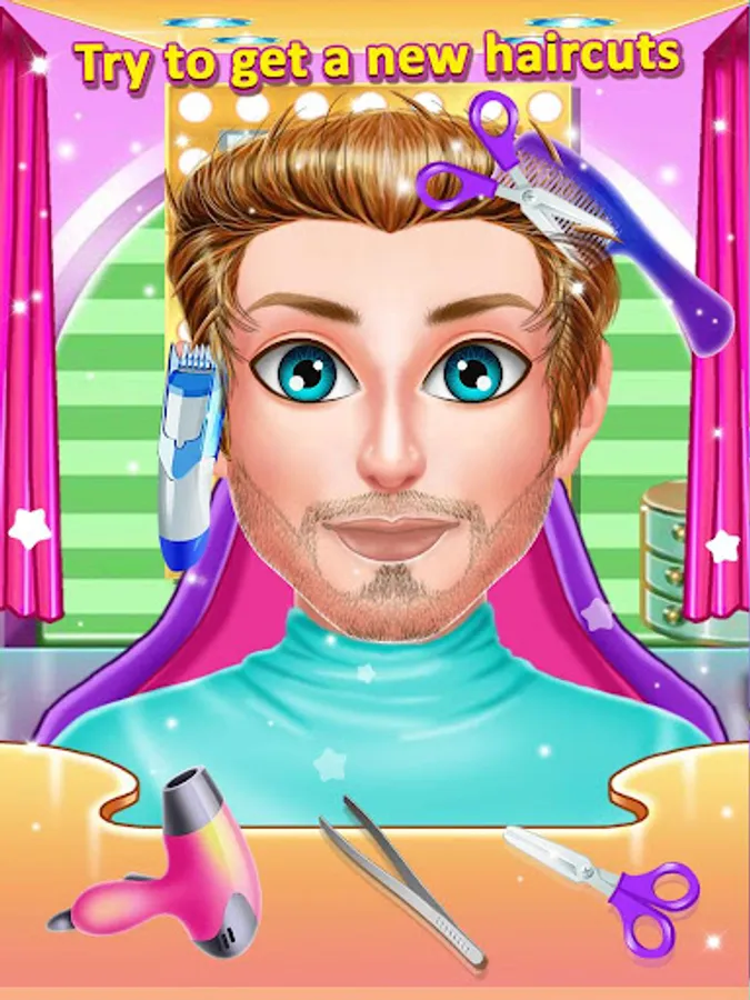 You need to fell you have barber shop and you are hair stylist. It’s really amazing and very exciting and interesting salon game for game lovers. In this there are so many different levels like hair cutting, hair color, beard and dress up also. You need to completed give hair treatment and also need help in dress up session. You need to choose perfect cloths for father and his princess. So are you excited for play this game?