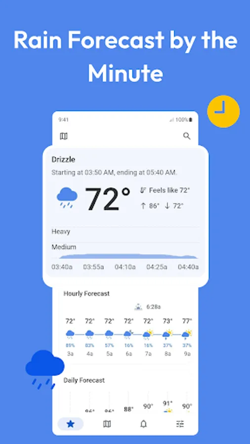 Plan your days better with hourly and daily weather updates. Stay ahead of the rain with our accurate, down-to-minute precipitation forecast.