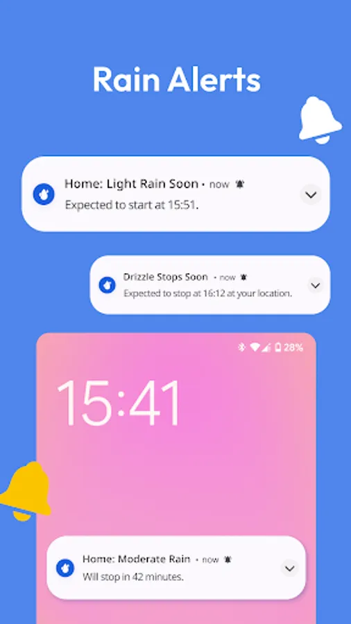 Stay safe with severe weather alerts that warn you about extreme weather conditions. Know when to grab your umbrella or stay indoors with our timely rain forecast alerts.