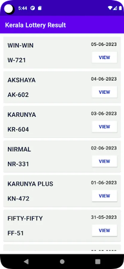 The seven daily lotteries are the Akshaya Lottery on Sunday, the Win-Win lottery on Monday, Sthree Sakthi Lottery on Tuesday, Fifty-Fifty Lottery on Wednesday, Karunya Plus lottery on Thursday, Nirmal lottery on Friday, and Karunya lottery on Saturday.