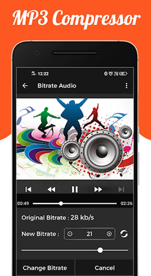 Audio Compressor App is Reduce The Size of the Audio with Compromise in BitRate Quality.MP3 Compressor App Allow You To Compress Your Favorite Audio and Share in Soical Media.