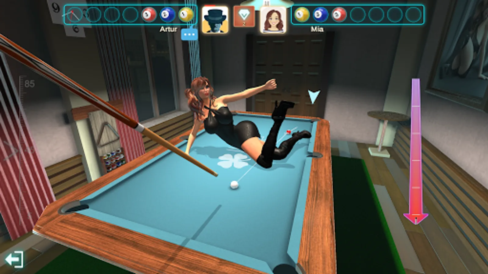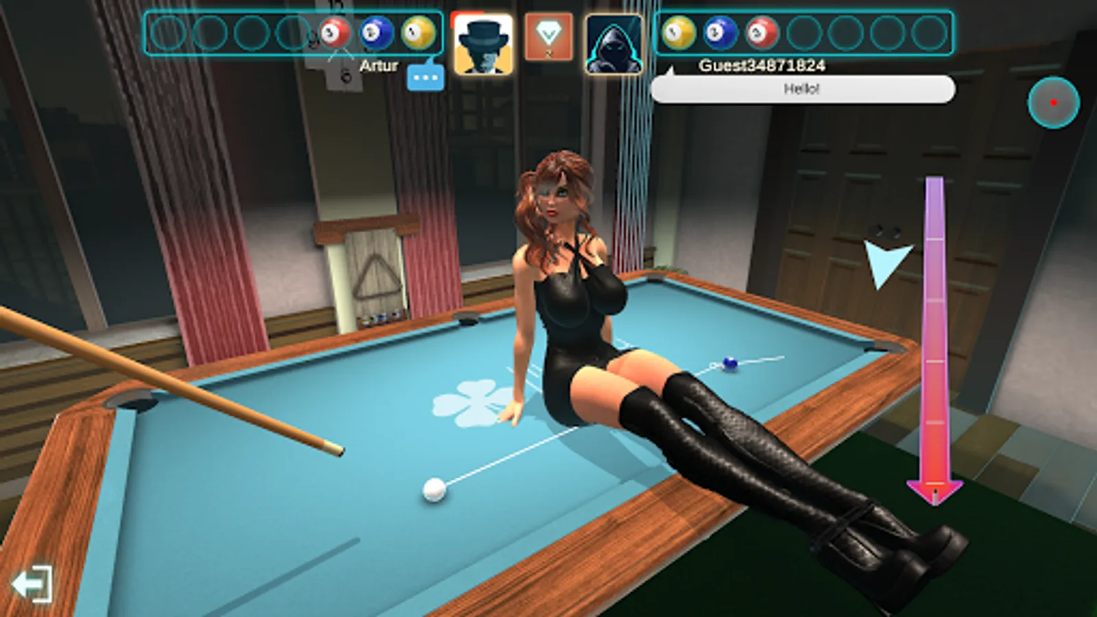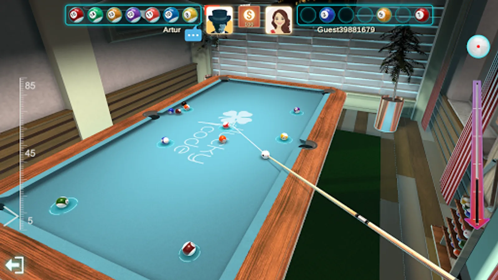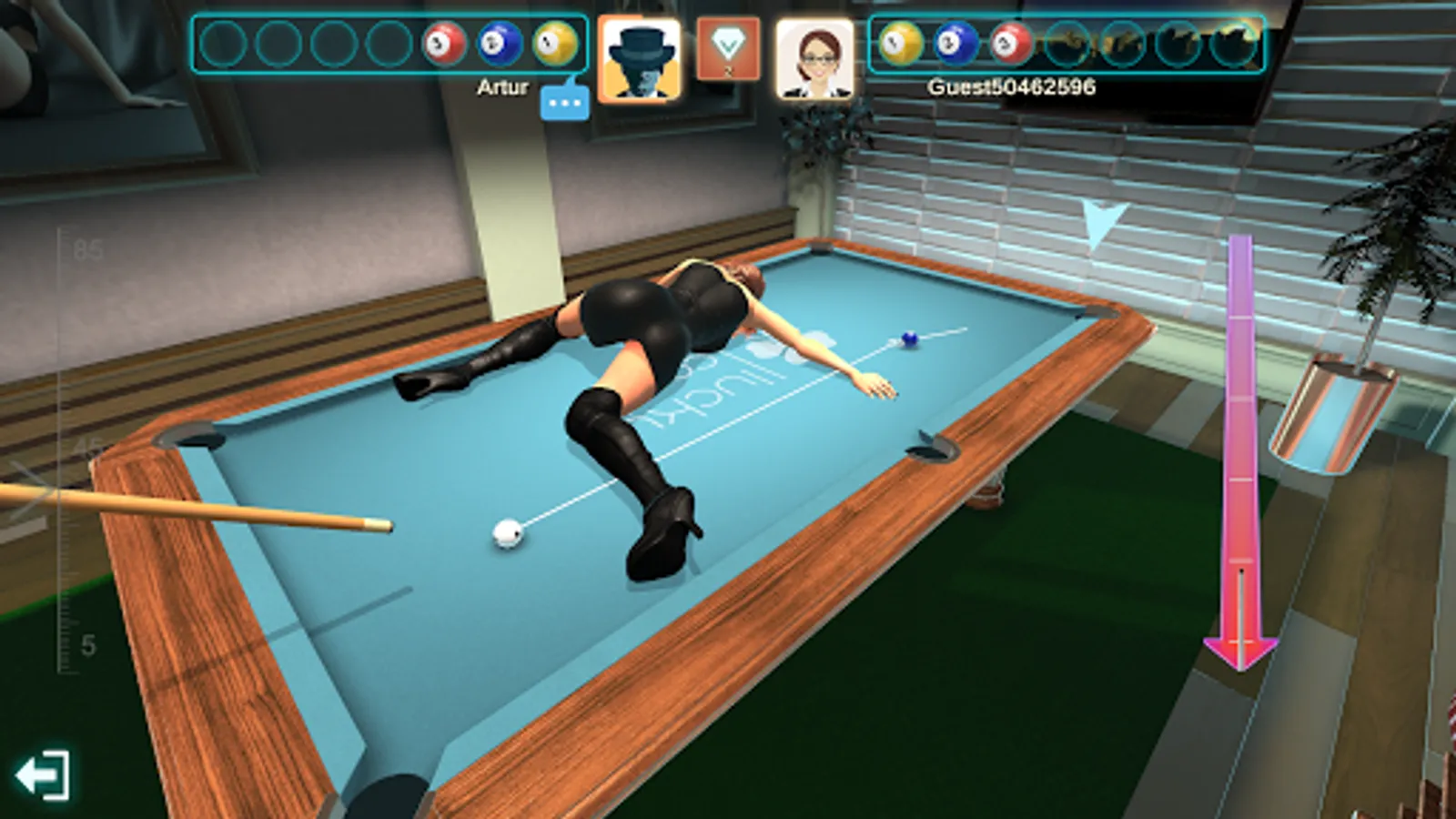 Play 3D 8 Ball Pool and do Tricks with very realistic physics and cue control