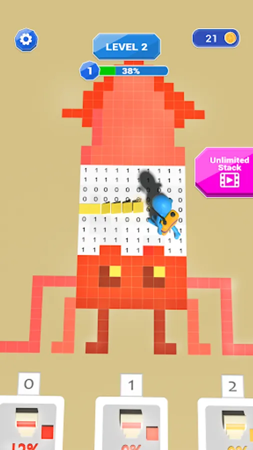 Simply move you character with the virtual joystick. And Enjoy a running version of pixel art color by number.
