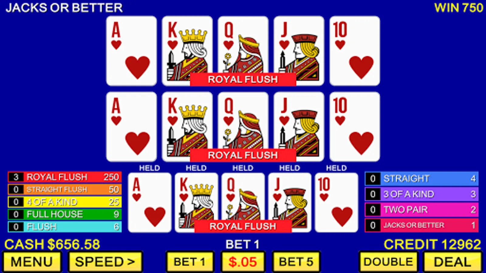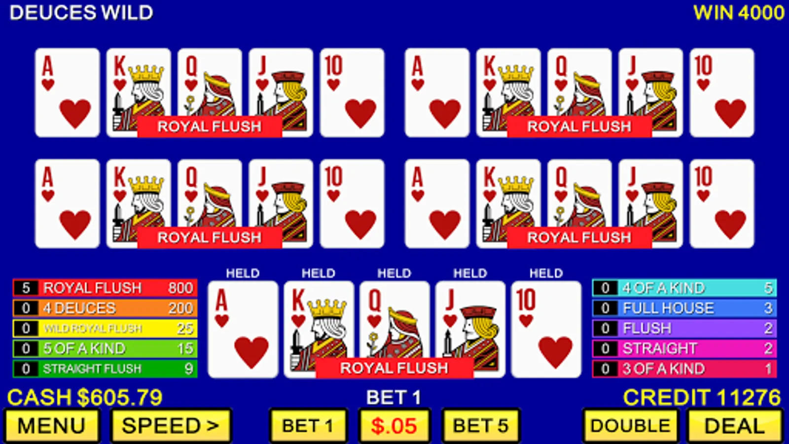 Classic Multi-Hand Video Poker Features include: - Over 20 different variations of multi-hand video poker