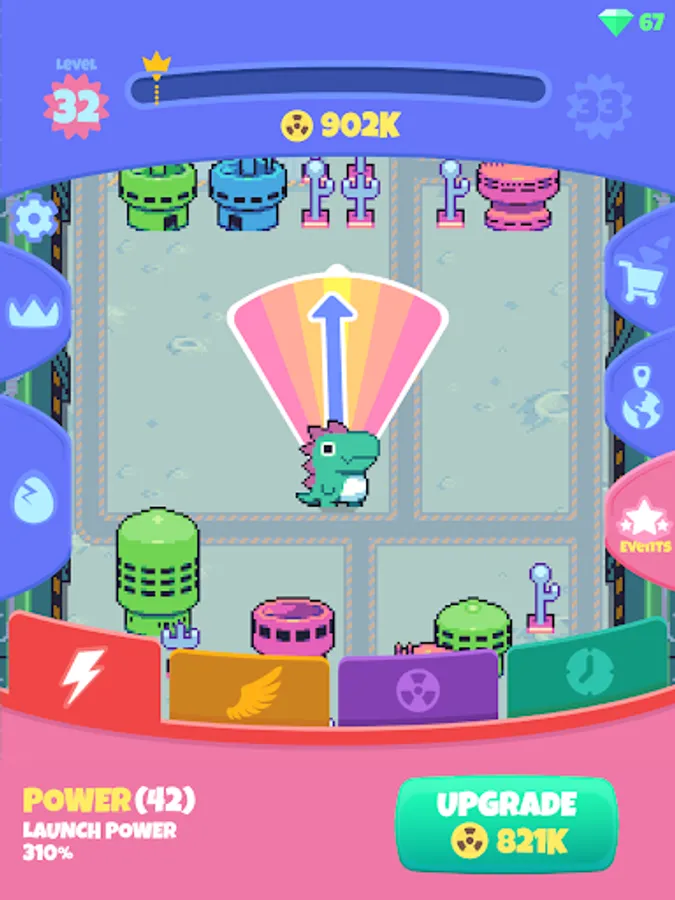 Don't forget to upgrade monsters and improve your distance. Get further to discover more buildings and to unlock more Kaiju monsters.