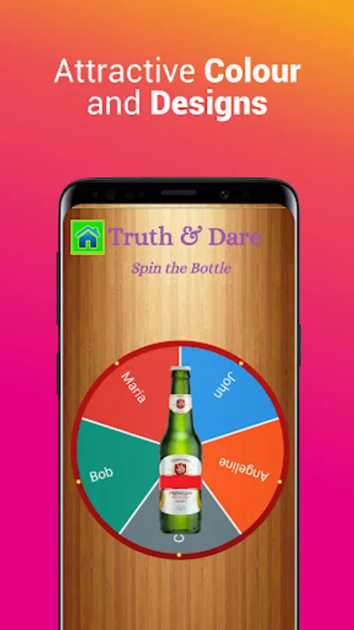 Truth or Dare Spinning Bottle is designed with attractive colors.