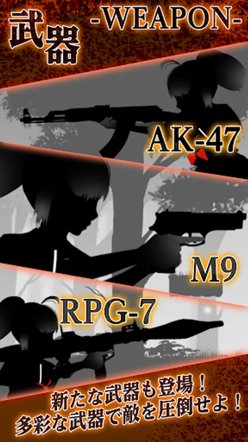 Silhouette Girl beats monsters with a gun M9 , AK-47 and RPG-7.