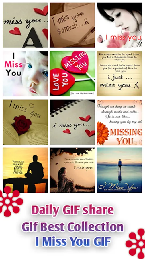 Send I Miss You Gif Images for Chat to anyone you I Miss You . Make your chat more loving and special one using this app.