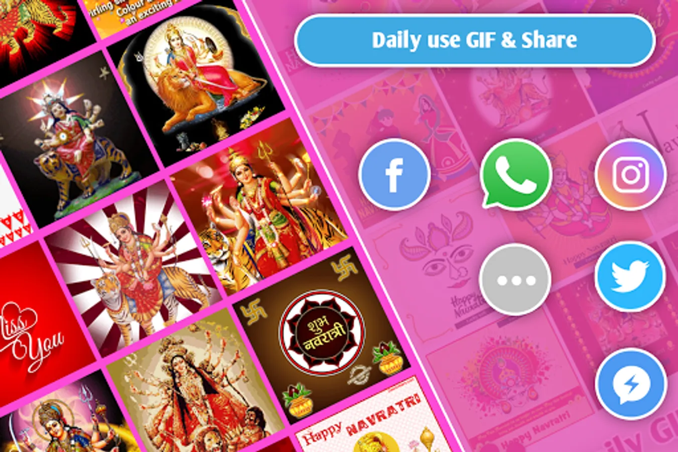 Send Navratri Gif Images for Chat to anyone you Navratri . Make your chat more loving and special one using this app.