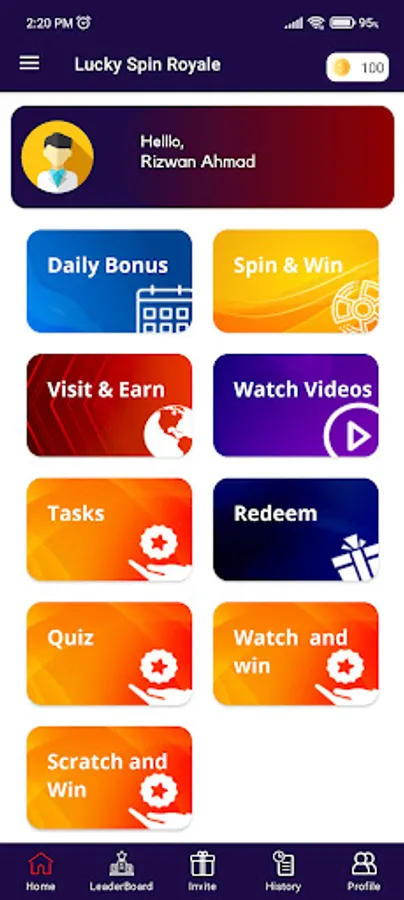 Here you can scratch the card and get a lucky number of coins according to your luck.