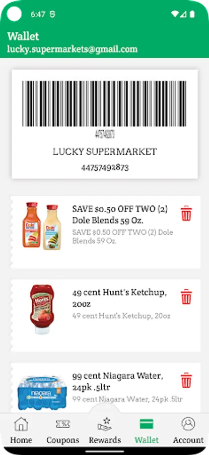 With Lucky's Supermarkets Claim as many coupons as you want with one simple scan! No more searching through mailers or printing out emails, Lucky's Supermarkets app is bringing rewards right to your mobile device!