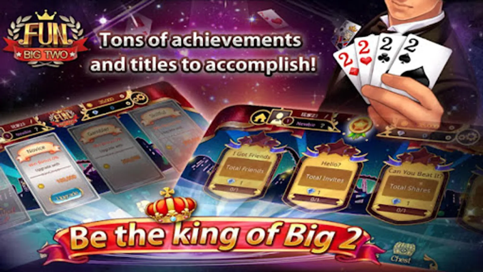 Don't hold back – delve into Fun Big 2 today! With the offline mode available, you can relish this classic card game wherever you wish. Enhance your abilities, complete milestones, and accumulate rewards as you ascend the ranks. Fun Big 2: Card Battle Royale is here – download now for the most thrilling card game experience ever!