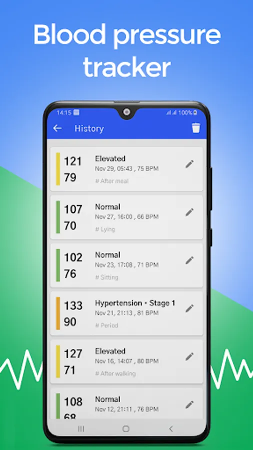 Blood pressure tracker is very reliable and safe, the system will automatically calculate and make quick conclusions about the user's blood pressure readings. The blood pressure recording will help you easily manage and track the parameters in the most clear way.