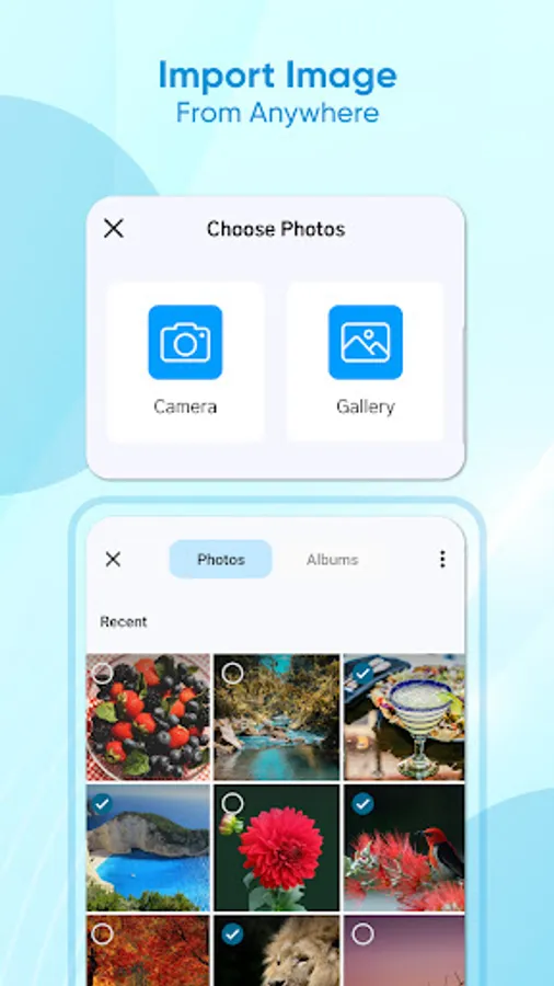 - Select one or more images from gallery or camera