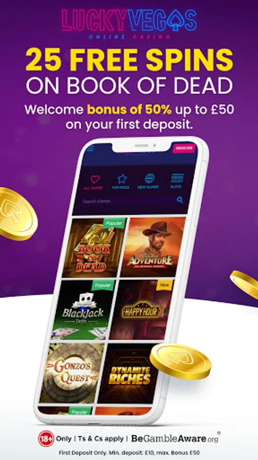 Download Lucky Vegas Casino App, and enjoy playing all your favourite Online Casino games, Slots, Roulette and Blackjack. 18+ BeGambleAware