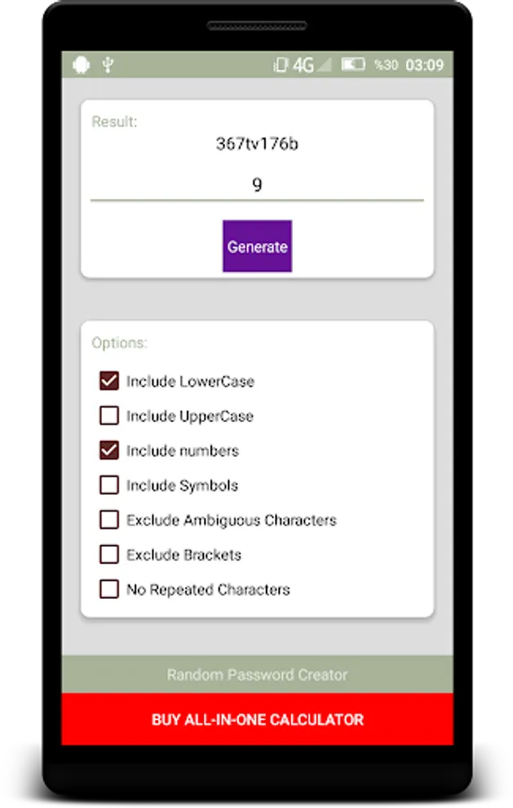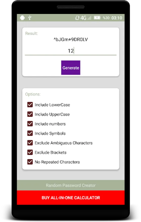 You can generate any kind of password with this free app. E-mail me for bug report or your advices.
