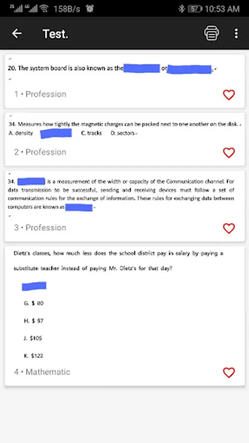Create a test paper, support random selecting questions, you can also freely adjust the order of questions, print and share. By default, the highlighter area is covered when printing, so you can answer with peace of mind without affecting it. At the same time, you can print the marked content, such as correct solutions, incorrect answer, key point, and causes.