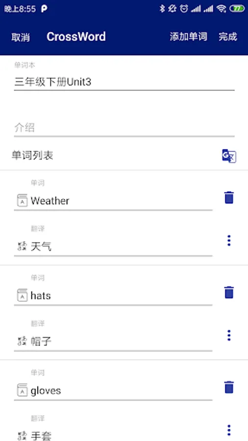 Crossword is a common paper puzzle game. In some intersecting rows and columns, the words are filled into the square according to the clue prompts. Each square can only be filled with one letter.