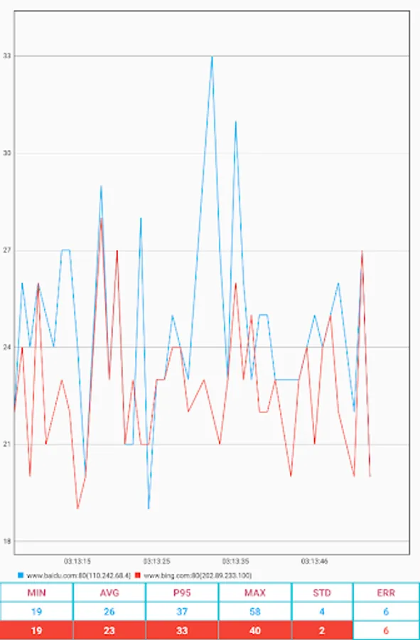 ServicePing allows you to Ping test different server addresses and port numbers through the network connection of your mobile device, and present the test results in the form of a line graph to help debug and adjust the website, or choose a service provider with better performance.