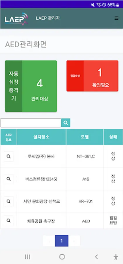 It is an integrated monitoring device and service developed to integrate and manage the AED's status in order to ensure normal operation of the AED in case of an emergency by applying IoT technology to the AED. AED’s once-a-day self-diagnosis data is transmitted to Smart AED’s L.SEND (IoT terminal), and then the AED’s status is sent to the manager in real time, and events such as opening the door of the storage box, AED removal in the storage box, and SOS emergency occur Notifications are provided in the form of a visualized dashboard and at the same time, event notifications (mail or APP PUSH) are sent in real time, enabling immediate response in case of an emergency, improving the success rate of lifesaving.