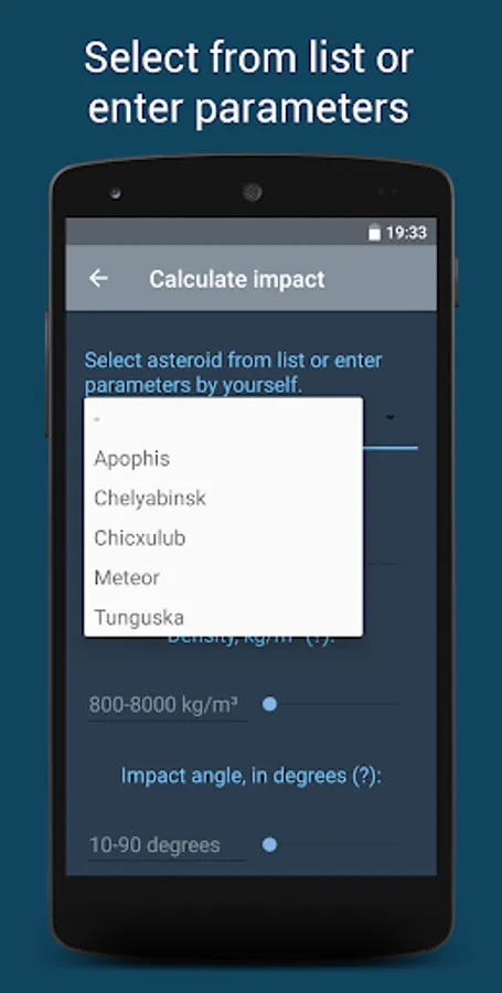 # Enter needed parameters or select Asteroid from list and press Calculate;