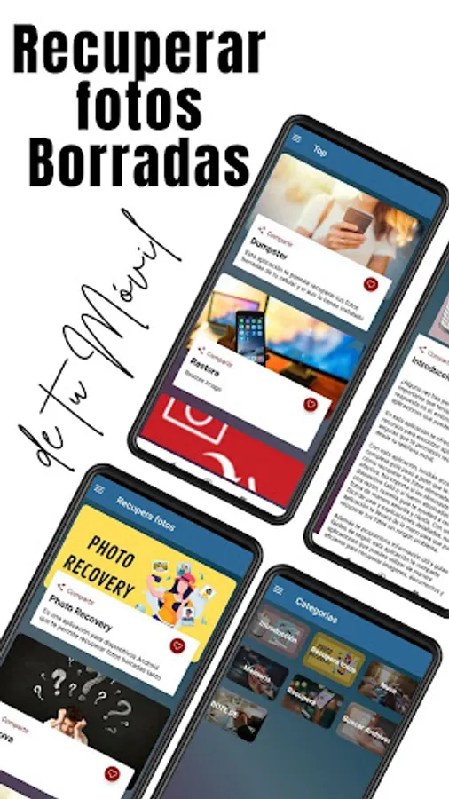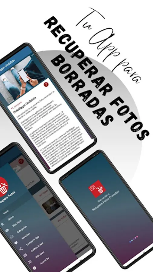 Recover deleted photos is an application that contains a very easy-to-use guide, which provides you with the main features of the apps whose purpose is to recover deleted photos from the mobile.