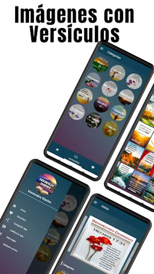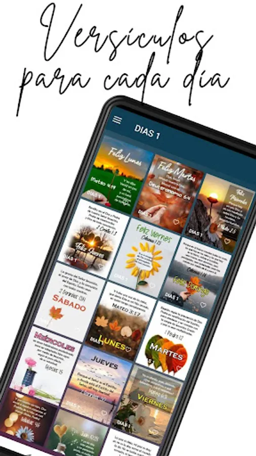 Here we present you a Daily Verses App with images where you can easily share the word of God with your friends and family at different times and occasions. You can send a Blessing greeting every day or images with verses on special dates.