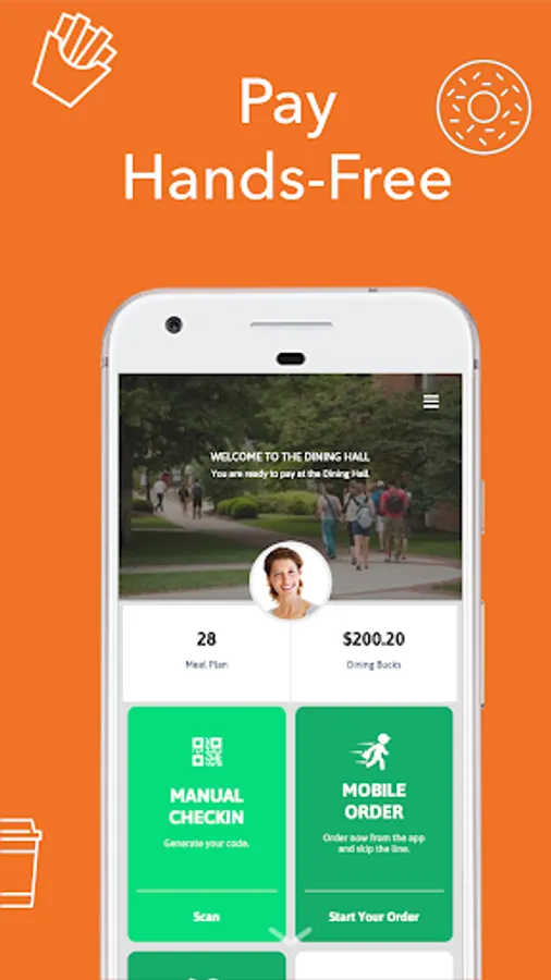 Eatable is your mobile wallet for all your campus needs! Use Eatable to store your meal plan and credit cards, all in one place for payments across your campus. Pay for your lunch, breakfast, or coffee with just a single click.