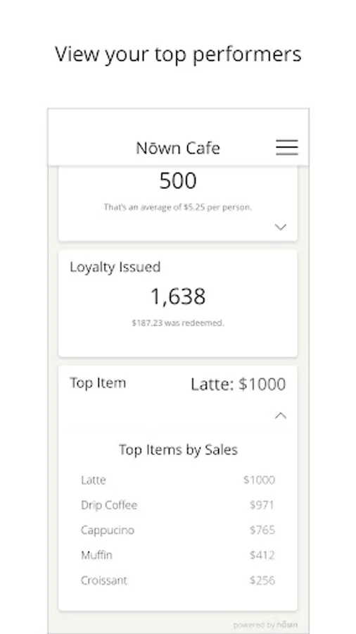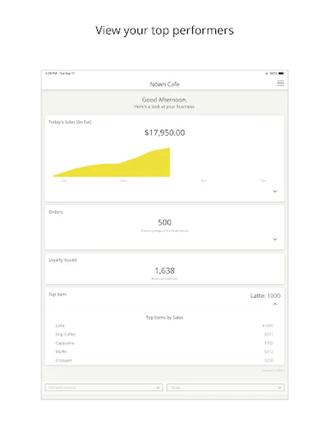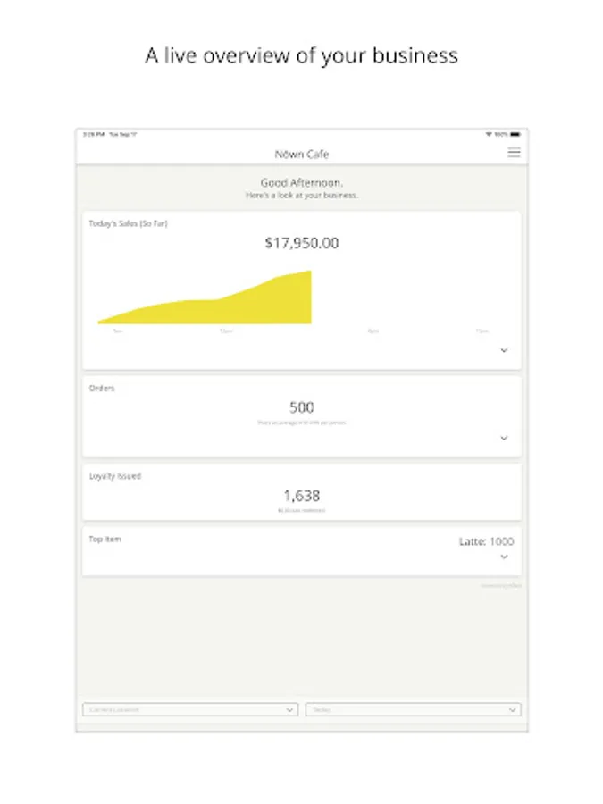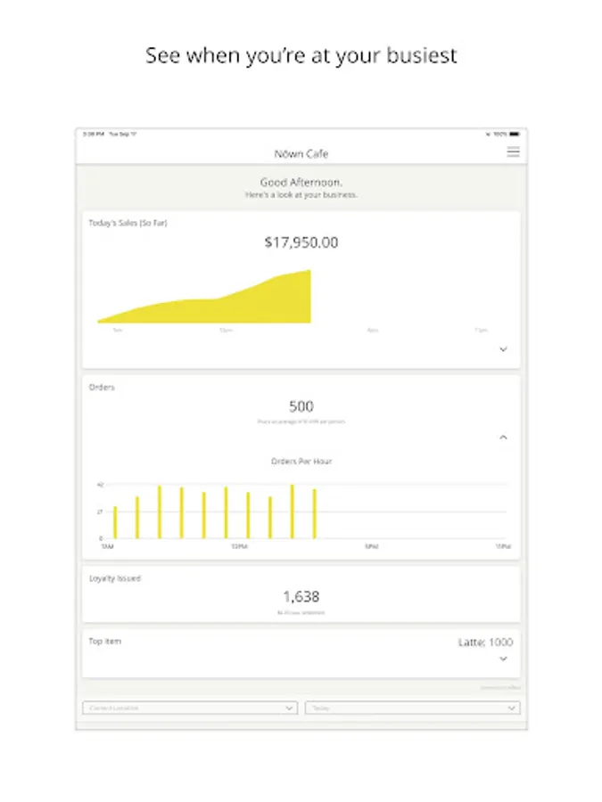 Nōwn Dash gives you a live look at your business’ performance, including: