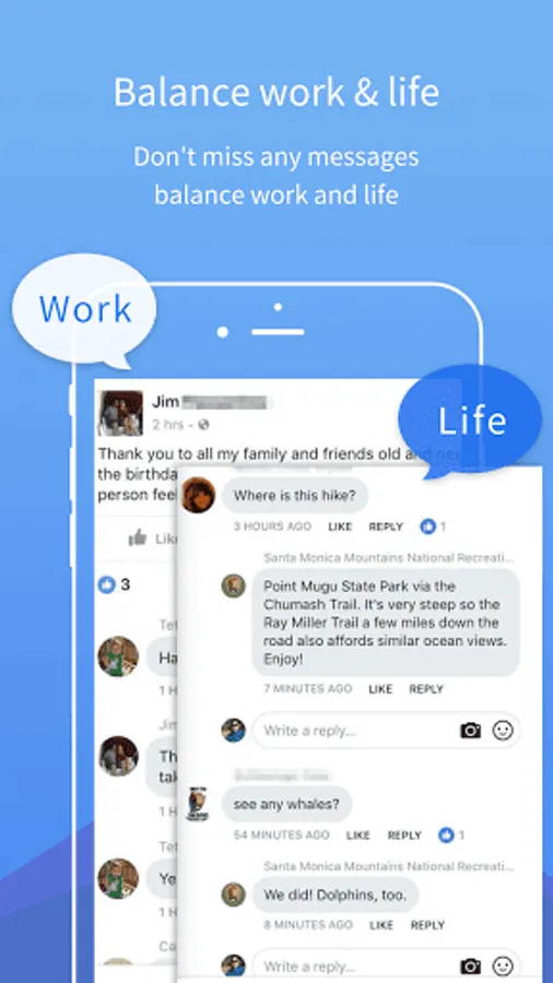 · Keep your personal accounts and work accounts both online at the same time, and you can balance between life and work easily.