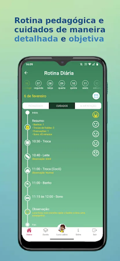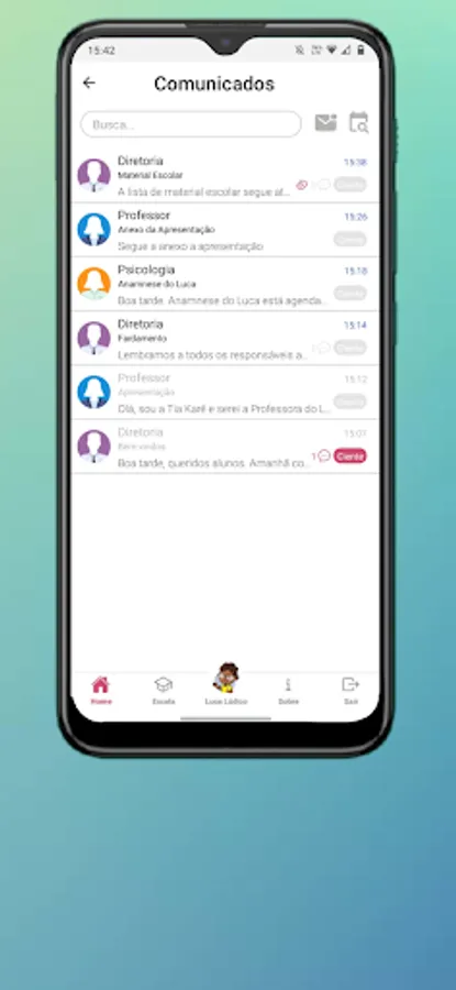Parents or guardians will have access to the world offered by the school, and through this platform, the creation of an appointment routine is guaranteed objectively, since the language of the application is easy to understand. The platform provides access to various features such as: