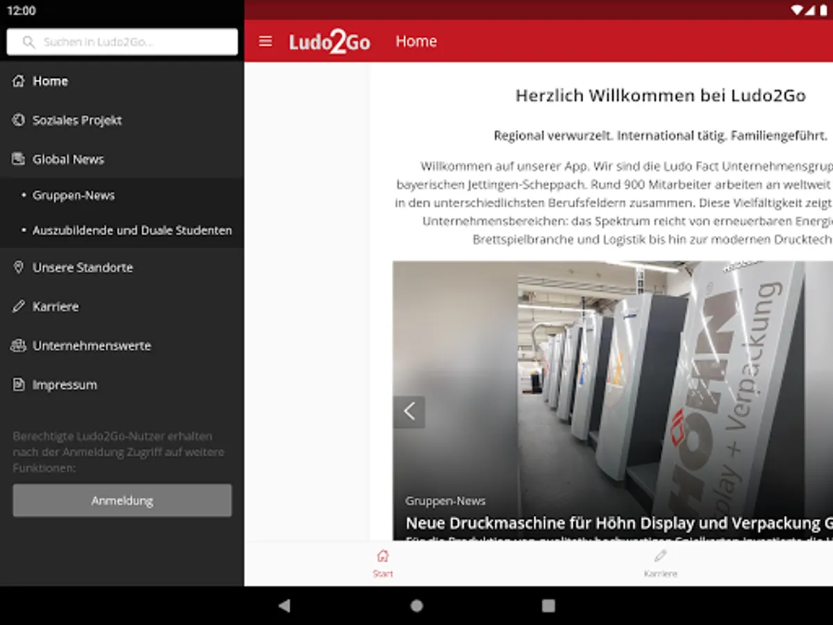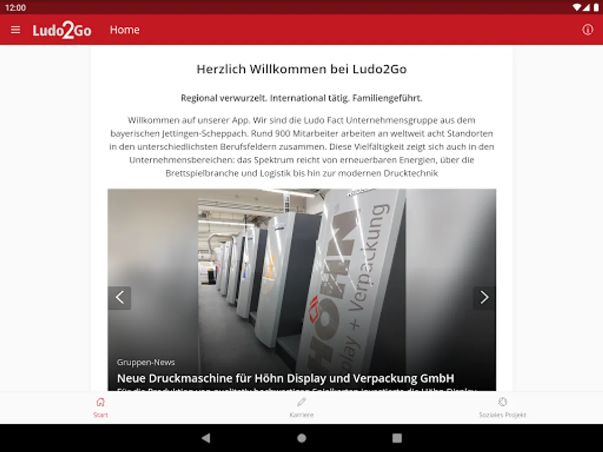 Ludo2go is the company app of the Ludo Fact Group with its subsidiaries Ludo Packt GmbH & Co. KG, Friedmann Print Data Solutions GmbH, Höhn Display + Verpackung GmbH and Vento Ludens GmbH & Co. KG.