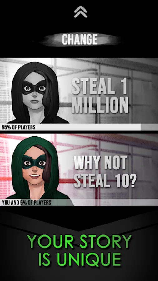 Join a community of players with eclectic profiles and tastes. Every choice you make leaves a mark in Robin’s story. Once you've made your choice, it gets included in the community’s and you get to have a look at the choices made by other players. Act like a rebel or blend in with the crowd? It’s your call!
