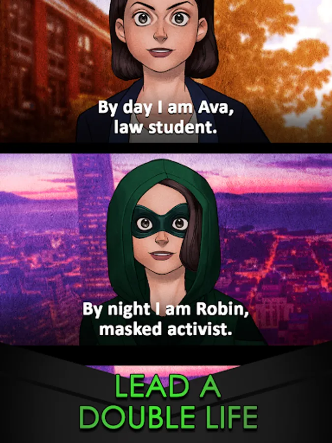 Robin takes you into the world of a young adventurous student who’s willing to do anything to save the planet from the foretold disaster. Underneath her mask and costume, Ava is determined to change things. But such great responsibilities cannot fall to one person alone and your help will be precious. Superheroine with a big heart or rebel activist - you get to choose how you want to take action.