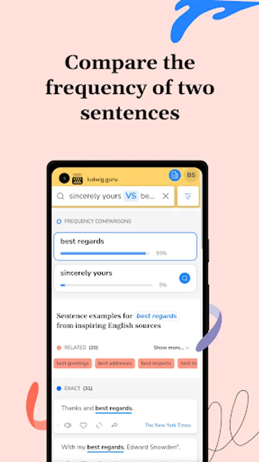 Ludwig will let you know if you are writing it in the best way and will show you examples taken from the most reliable sources.