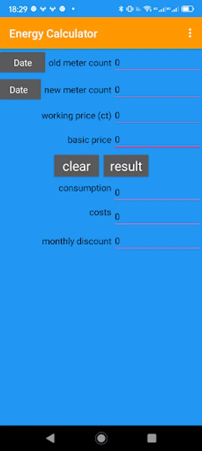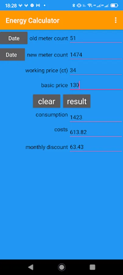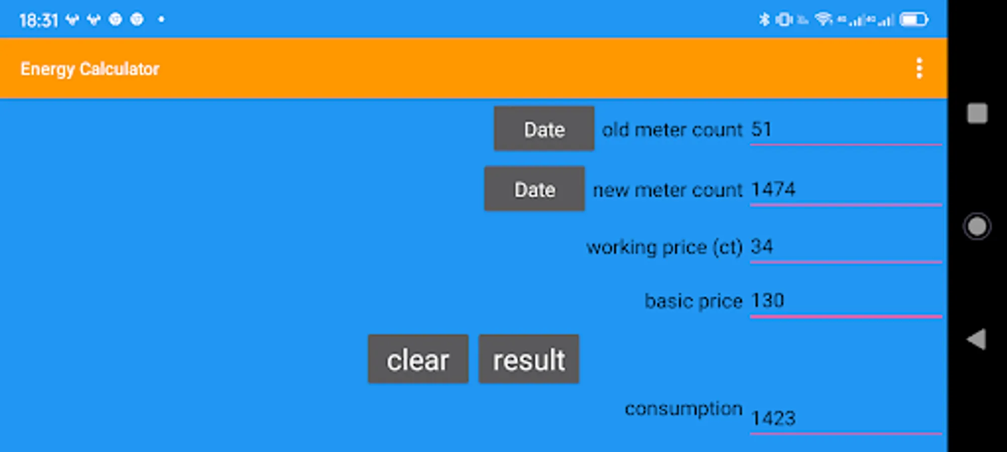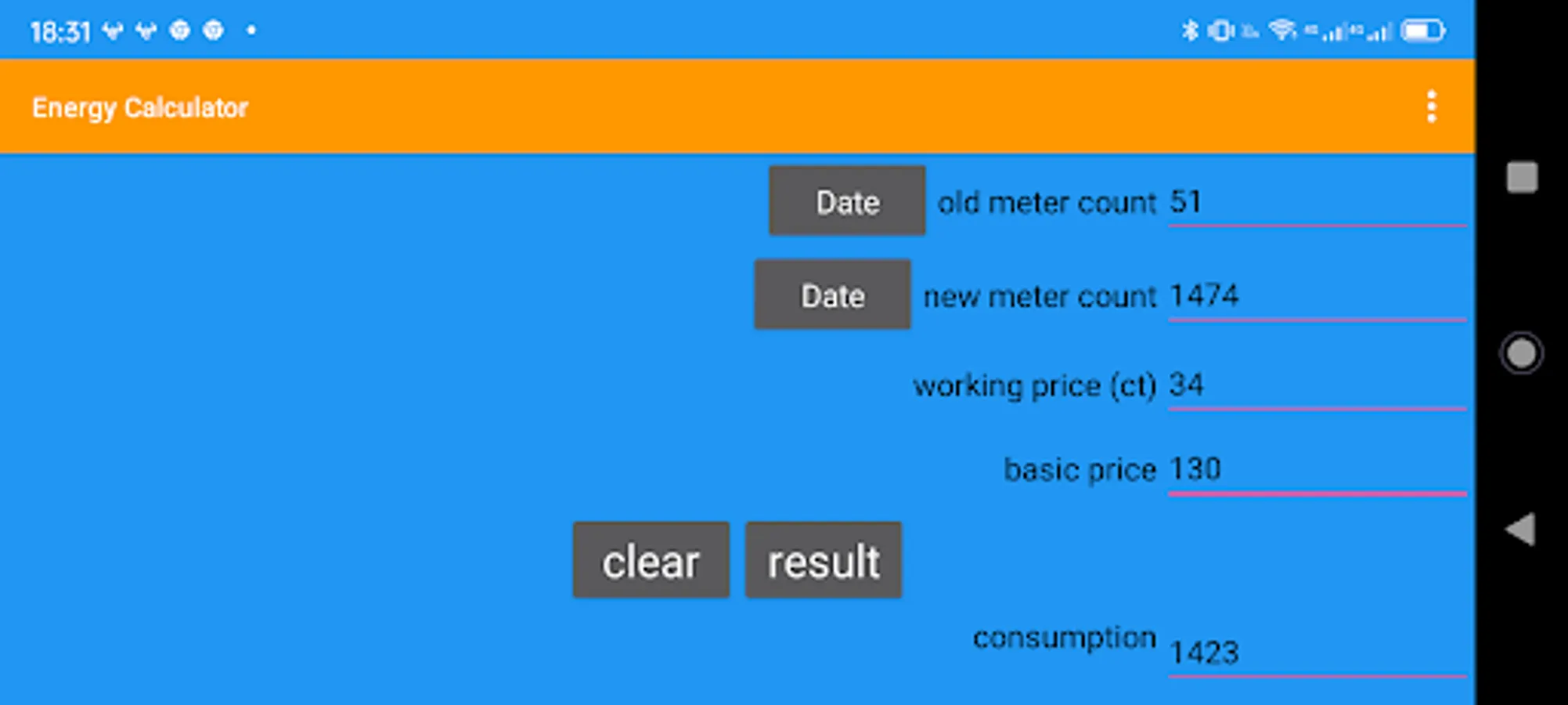 Just enter the date and the meter count from your last energy bill, your current date and meter count, the working price and the basic price of your energy contract and Energy Calculator will provide you with your current energy consumption and costs and suggest to you the optimal monthly discount.