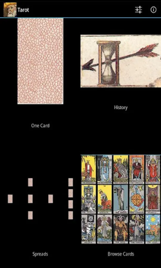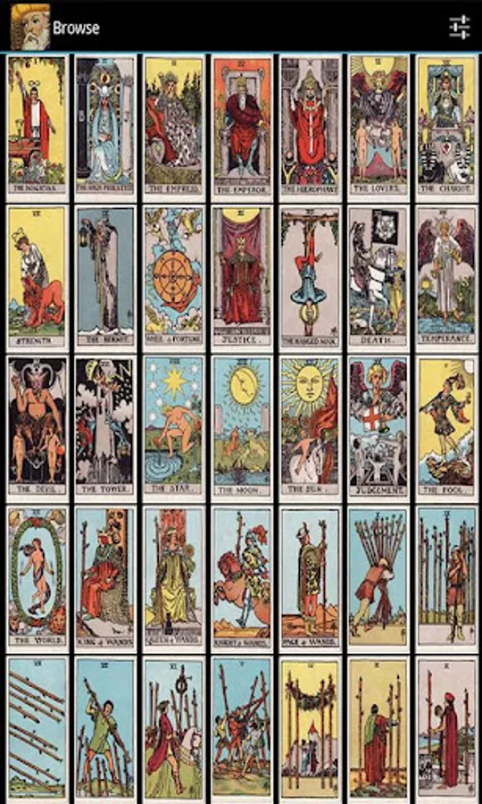 -- Three embedded decks: Pamela Smith (1909 classic commissioned by A.E. Waite), Nicolas Conver (1765 -- traditional Tarot de Marseille), and Bonifacio Bembo ("Visconti-Sforza" imagery ca. 1450).