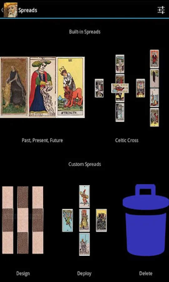 -- User-programmable spreads. Yes, that's right: you are not limited to a fixed set of "canned" spreads. You can create your own patterns using a grid with 4 rows and 5 columns.