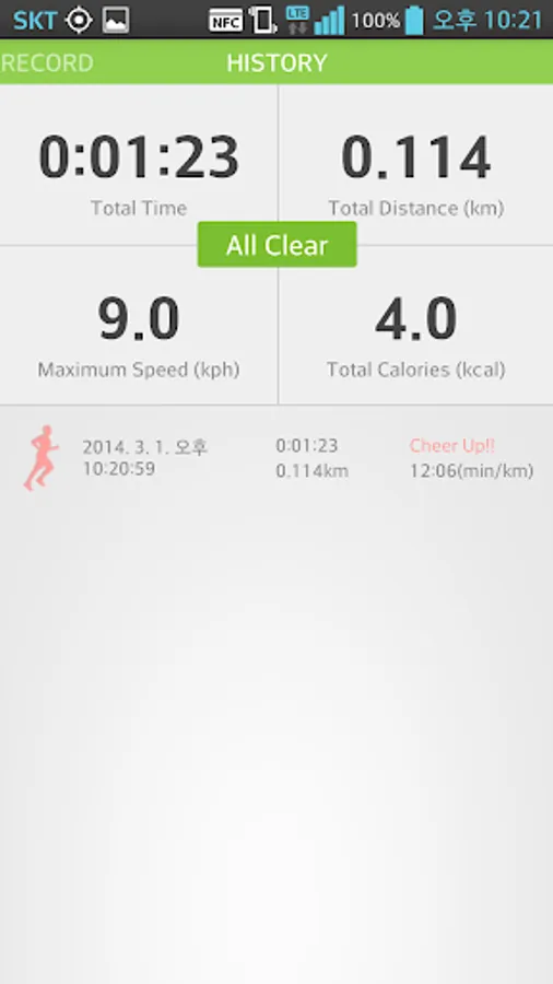 Cumulative time and distance, calories shows