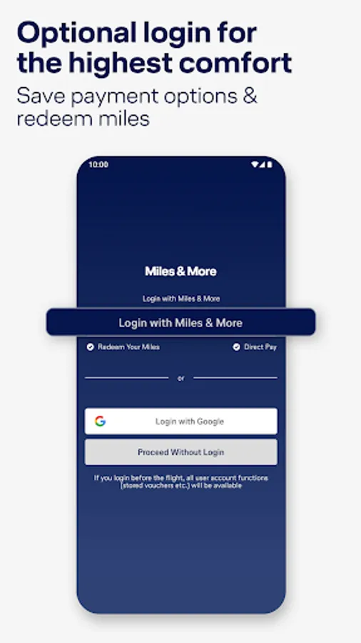Login to the app to use the comfort feature. Redeem your miles to obtain internet access.
