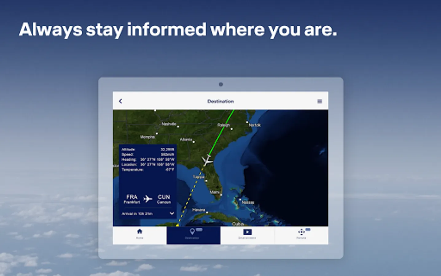 The LHSecondScreenApp also provides you with up-to-date flight information and the location of your flight on a map.
