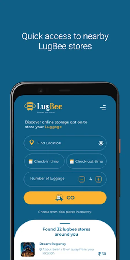 Near or far, for any duration, store your bags in just a few clicks through the 'LugBee App'. Now continue your fun on the trip or go with the work hands-free.
