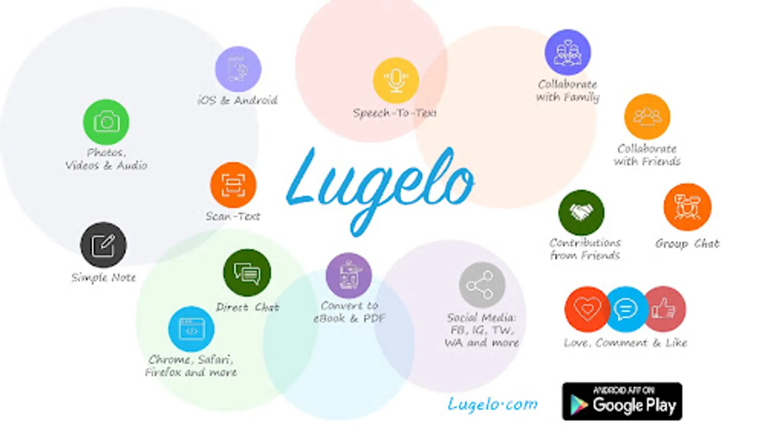 - Lugelo For Collaboration on Live Stories: Collaborate on storytelling and creation about life events such as new births, weddings, graduations, conferences, and many more. Your imagination is the limit.