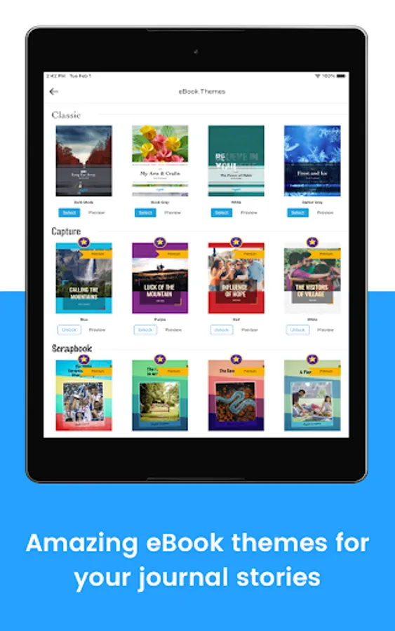 - Convert your journal stories into books, ebooks or print or snippets on canvas.