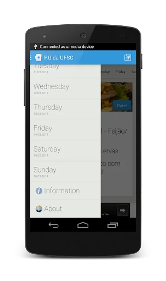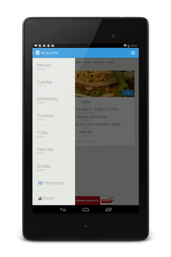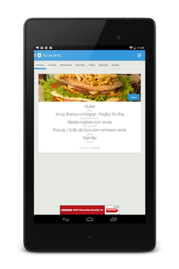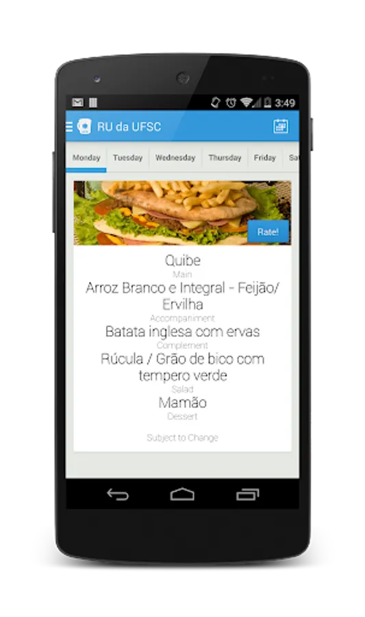 App for the University Restaurant (RU), the app shows the weekly menu for the restaurant.